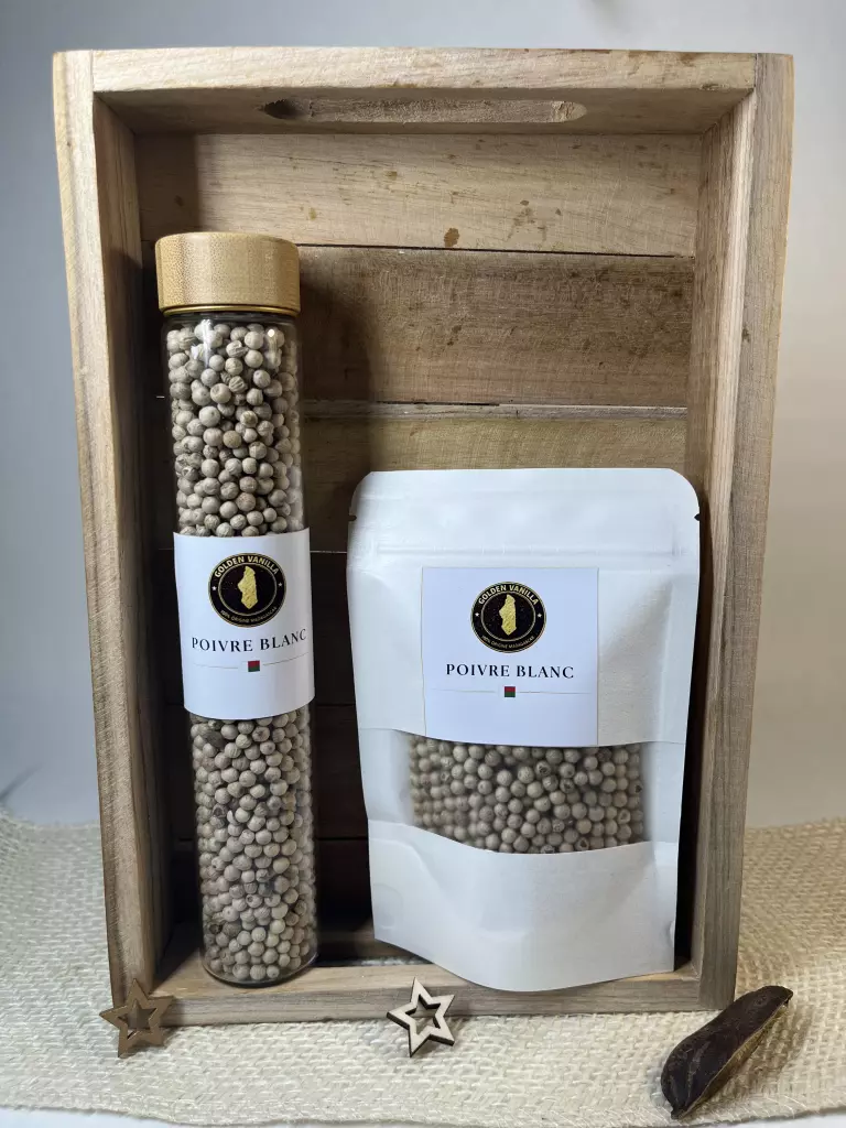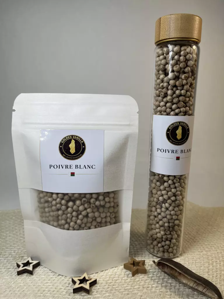 Le poivre blanc de Madagascar est apprécié pour sa capacité à relever un plat sans dénaturer ses saveurs. Un produit premium, naturel, trié soigneusement, parfait pour la cuisine fine.