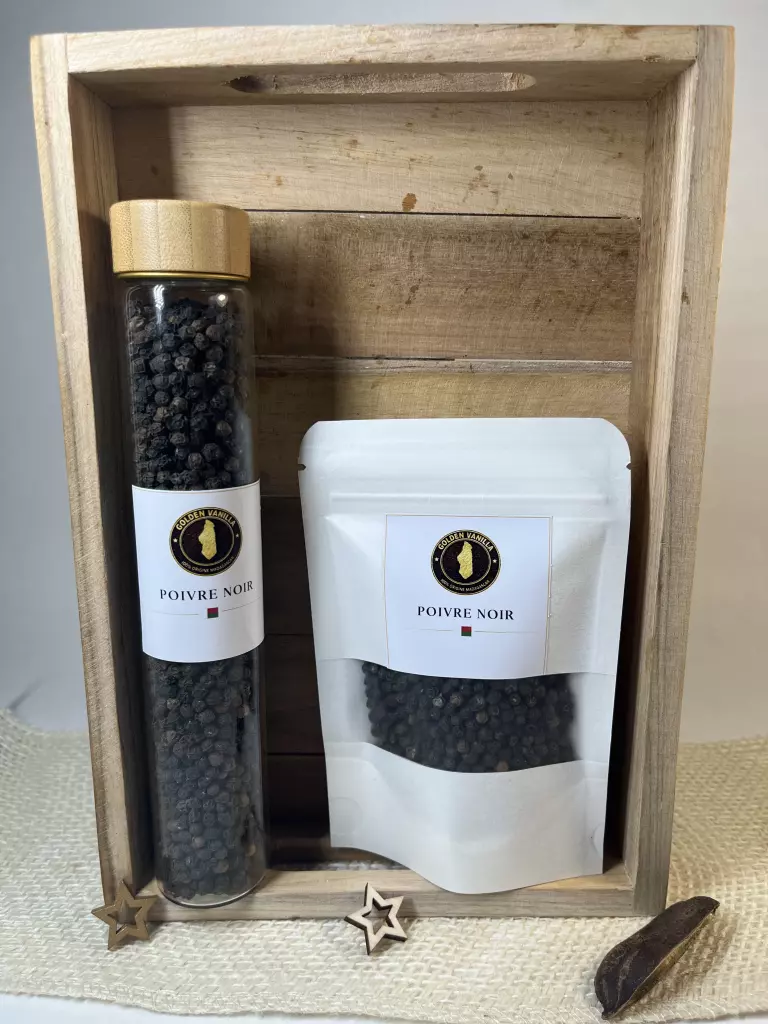 Le poivre noir de Madagascar est reconnu comme l’un des plus aromatiques au monde. Cultivé dans les zones tropicales humides de l’île, il bénéficie d’un climat idéal qui lui confère un parfum puissant, chaud et parfaitement équilibré. Les grains sont récoltés à maturité, puis séchés au soleil selon un savoir-faire traditionnel qui permet de concentrer tous les arômes.